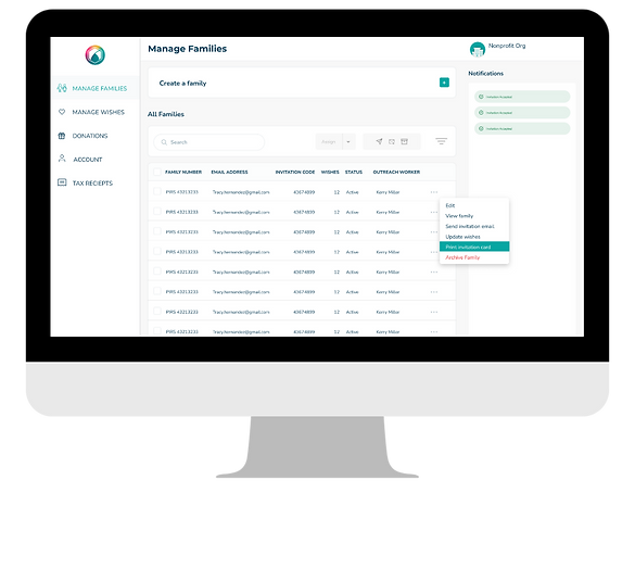 Manage families, wishlists, donations and tax receipts while keeping your data secure and maximizing nonprofit longevity with adopting forward-thinking efficient processes.